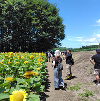 コロナ禍の為、関係者は事前に抗原検査を実施し、陰性確認のもと青空の下ひまわり達から元気を貰い、そしてトウモロコシの収穫体験も楽しんで頂きました。